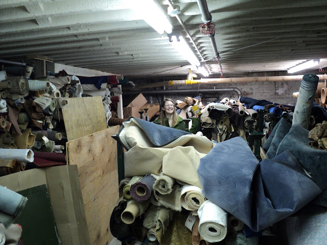There was this spot that was nothing but zippers of every shape and size and color. Molly was gleeful over the sheer amount.(Believe it or not, there was a sign next to me that said "Sorting in Progress" but zippers were EVERYWHERE. There was an entire boxed off space next to us filled with separating and metallic zippers.)