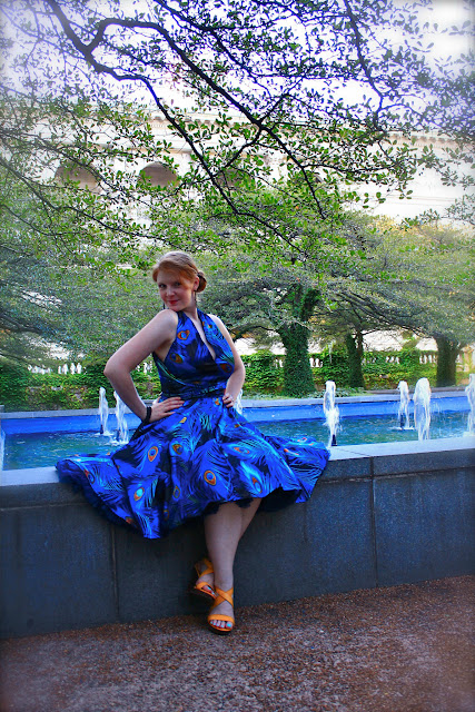 In order to be prepared to celebrate darling Oona, I needed a dress that was very "her." So, when I saw peacock fabric at the Textile Discount Outlet, I grabbed it and waited. And waited. And waited. I've had this fabric for six months just waiting to properly honor my friend.