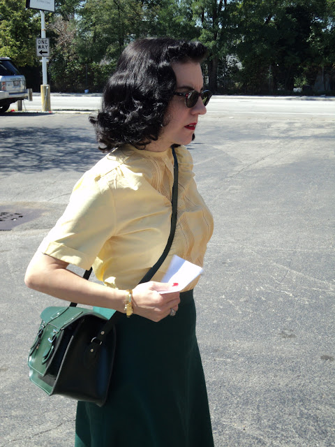Liz's skirt is DIVINE, y'all. She's perusing the cotton prints, where I saw the most delightful print with neon green telephones all over it. I didn't buy it ($10 a yard for a thin cotton wasn't really in the budget for the day), but I definitely admired it's quirkiness.